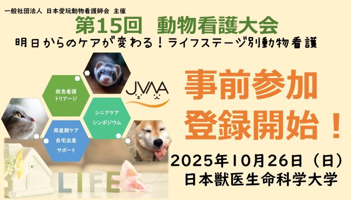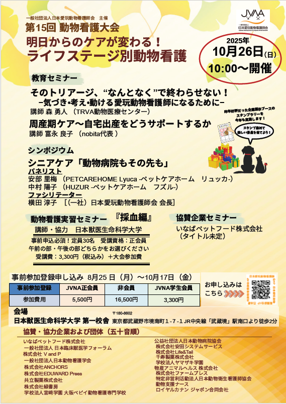 この度は一般社団法人 日本愛玩動物看護師会 主催「第15回動物看護大会」にご協賛いただき誠にありがとうございます。