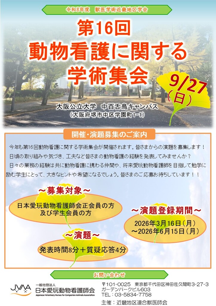 第16回動物看護に関する学術集会が今年も開催されます!