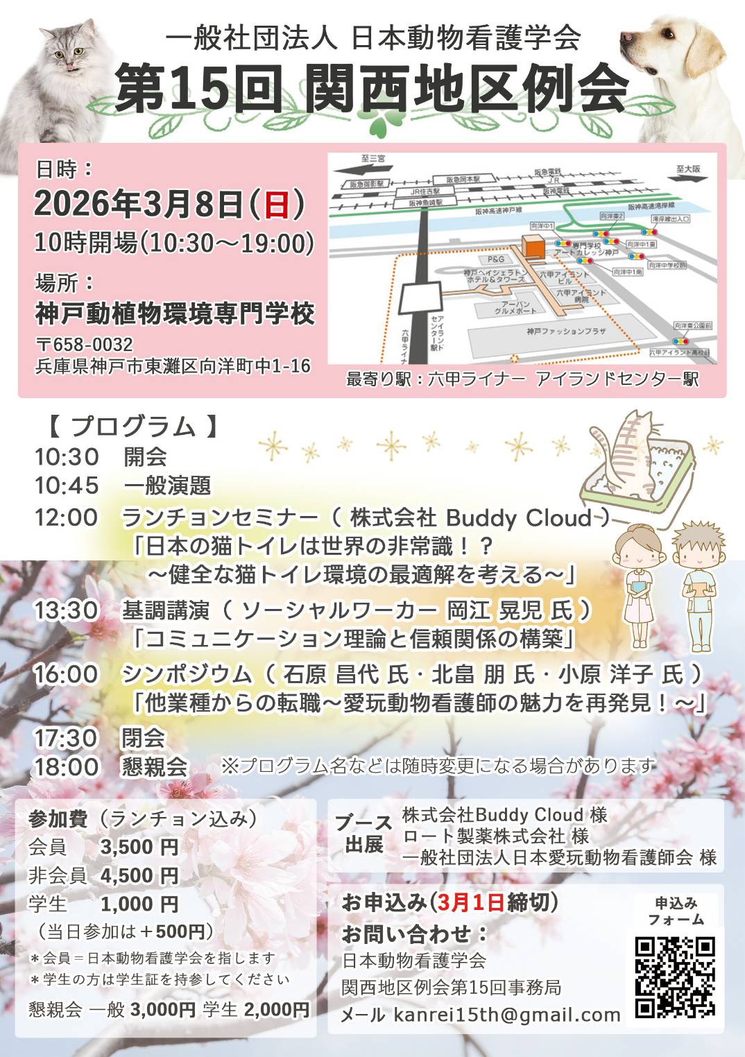 主催 一般社団法人日本動物看護学会 第15回関西地区例会 事務局
